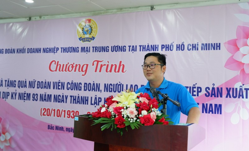 | Đồng chí Bùi Trọng Nghĩa – Đảng ủy viên, Chủ tịch Công đoàn Khối Doanh nghiệp Thương mại Trung ương tại TP. Hồ Chí Minh phát biểu tại chương trình |