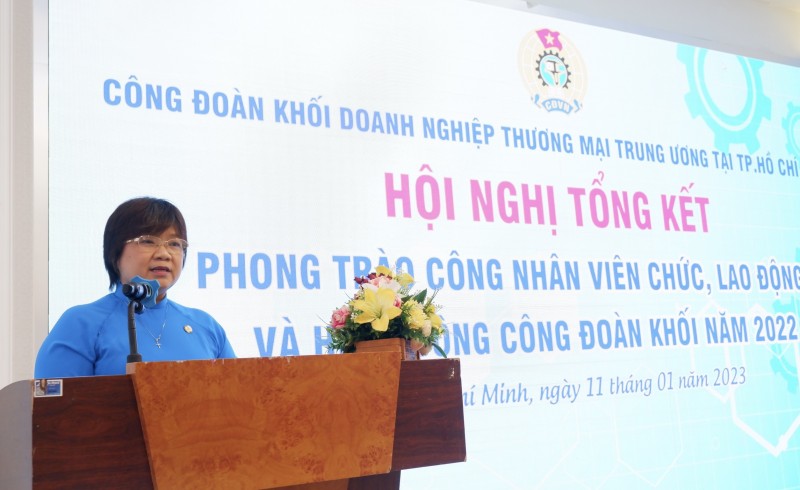 Tại hội nghị tổng kết phong trào công nhân viên chức lao động (CNVC-LĐ) diễn ra chiều 11/01/2023, bà Tạ Thị Tố Trinh - Chủ tịch Công đoàn Khối doanh nghiệp thương mại trung ương tại TP. Hồ Chí Minh cho biết: Năm 2022, 34 đơn vị thuộc Công đoàn Khối doanh nghiệp thương mại Trung ương tại TP. Hồ Chí Minh, đã vượt qua khó khăn và chăm lo tốt cho đời sống của công nhân viên chức, đoàn viên, người lao động và thực hiện tốt phong trào thi đua do Công đoàn Khối phát động.