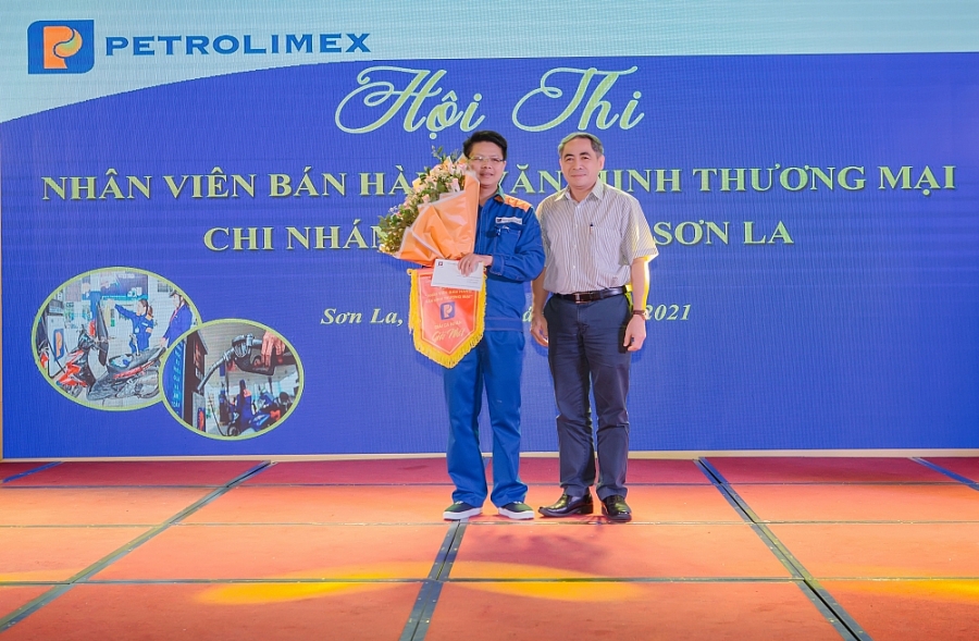 Phó Chủ tịch Công đoàn Petrolimex Phan Thanh Sơn trao phần thưởng cho thí sinh đạt giải tại Hội thi nhân viên bán hàng văn minh thương mại Chi nhánh Xăng dầu Sơn La (Công ty Xăng dầu Hà Sơn Bình) |