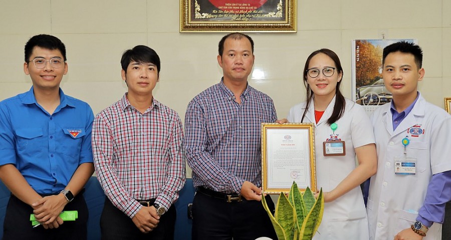 | Phó phòng Công tác xã hội Bệnh viện K Hoàng Thị Hoài Thu trao thư cảm ơn Tập đoàn Xăng dầu Việt Nam |