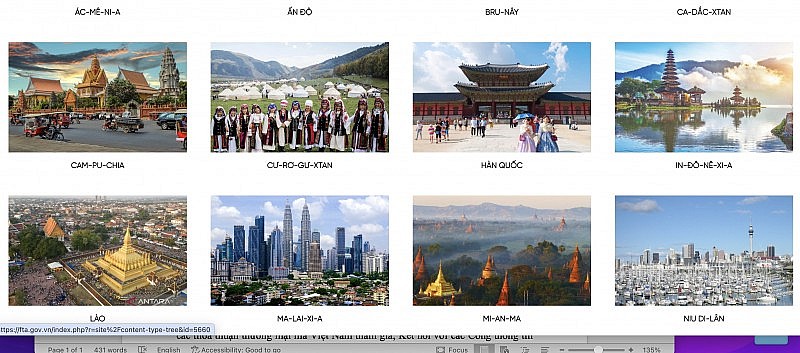 Cùng với đó là cập nhật các văn bản pháp luật liên quan đến các FTA và các thỏa thuận thương mại mà Việt Nam tham gia; cập nhật tình hình thực thi các FTA và các thỏa thuận thương mại mà Việt Nam tham gia; kết nối với các Cổng thông tin của các Bộ, ngành, các cơ quan đại diện Việt Nam tại nước ngoài, cơ quan quản lý địa phương và trang thông tin điện tử của các hiệp hội... để tạo điều kiện thuận lợi cho việc tiếp cận thông tin và sự hỗ trợ cho người dân, doanh nghiệp và nhà đầu tư, đồng thời tăng cường sự chia sẻ và khai thác dữ liệu dùng chung.