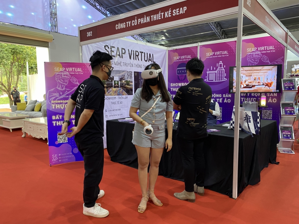 Tại triển lãm lần này, SEAP Virtual đem đến giải pháp công nghệ truyền thông thực tế ảo thông qua những sản phẩm, dịch vụ công nghệ tiên tiến: VR Tour, tham quan showroom ảo trên nền tảng số 4.0, trải nghiệm kính thực tế ảo VR.