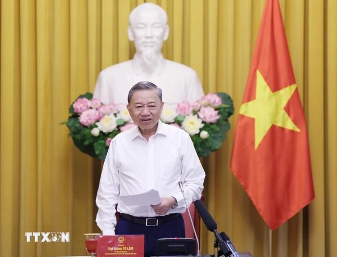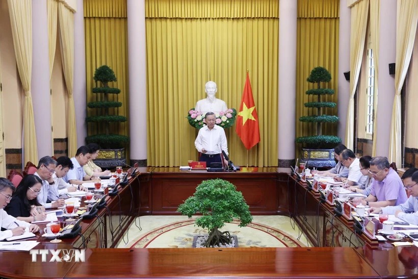 Chủ tịch nước Tô Lâm phát biểu chỉ đạo tại buổi làm việc về công tác thi đua, khen thưởng. Ảnh: Lâm Khánh/TTXVN