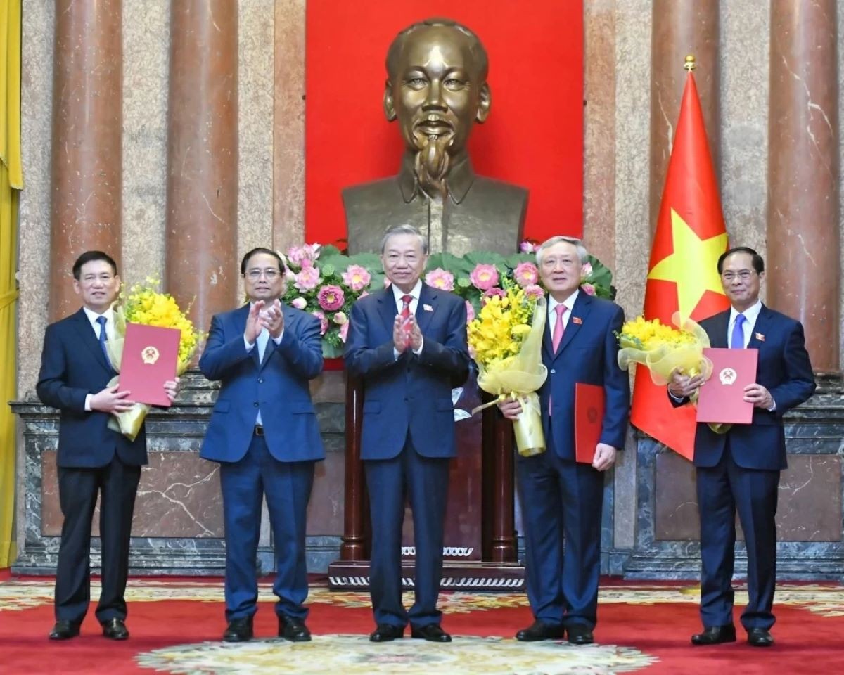 Theo đó, chiều tối 26/8, tại Phủ Chủ tịch, Tổng Bí thư, Chủ tịch nước Tô Lâm đã chủ trì lễ công bố và trao quyết định của Chủ tịch nước bổ nhiệm Phó Thủ tướng Chính phủ, Bộ trưởng Bộ Tài nguyên và Môi trường, Bộ trưởng Bộ Tư pháp.