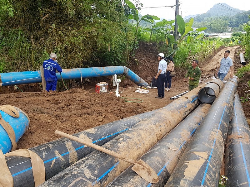 Thi công tuyến ống nước sạch D400 từ Nhà máy nước Bản Mòng đến ngã tư xe khách