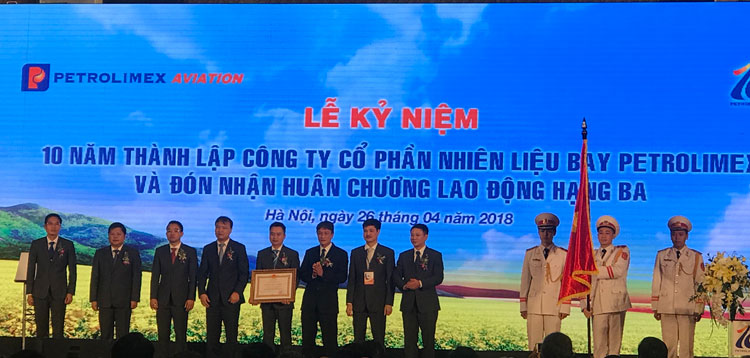 Thừa ủy quyền của Chủ tịch nước, Thứ trưởng Bộ Công Thương Đỗ Thắng Hải đã trao Huân chương Lao động hạng Ba cho Petrolimex Aviation vì đã có nhiều thành tích đóng góp trong suốt 10 năm qua cho sự phát triển của ngành vận tải hàng không nói chung và ngành cung cấp nhiên liệu hàng không nói riêng.