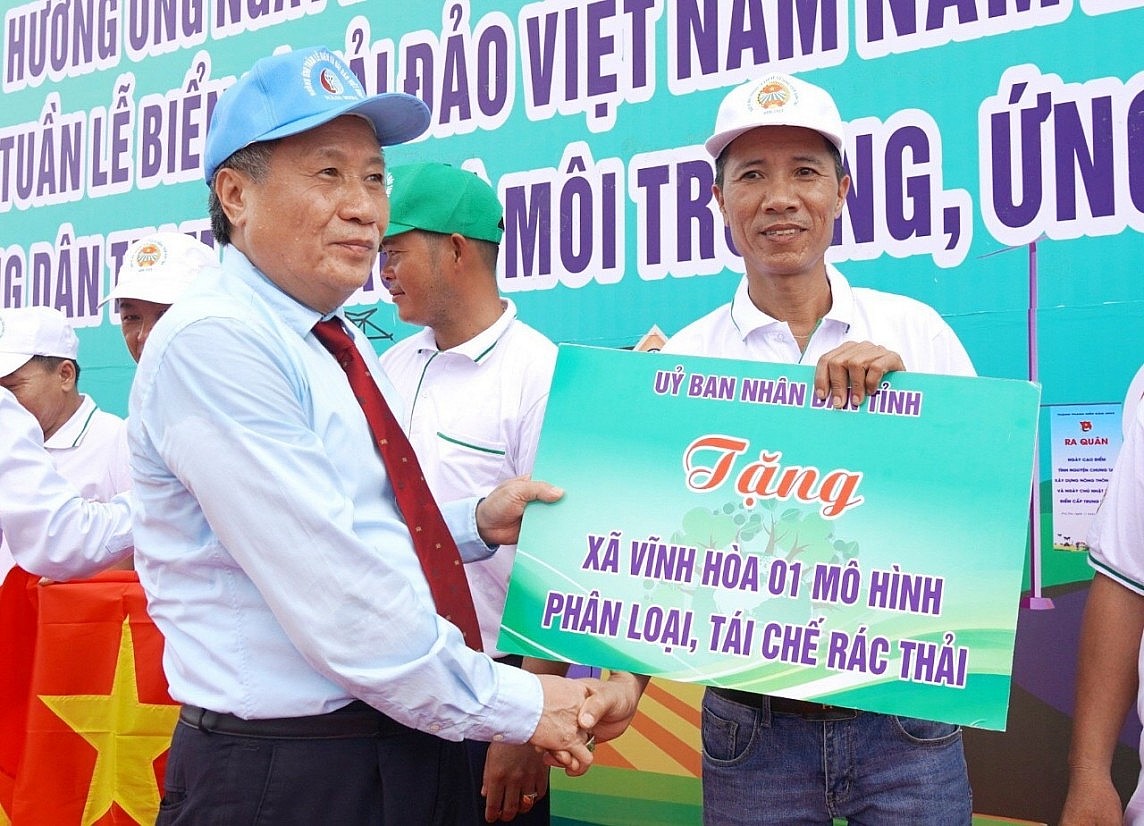 Tại Lễ Mít tinh hưởng ứng Ngày Môi trường thế giới được triển khai tại tỉnh Quảng Trị vào ngày 03/06/2024 vừa qua, sau lời phát động kêu gọi sự tham gia của các cấp, các ngành, cùng toàn thể nhân dân chung tay bảo vệ tài nguyên thiên nhiên; nâng cao ý thức của cộng đồng trong việc khai thác hợp lý tài nguyên, bảo vệ môi trường bền vững, vì sự sống của chúng ta và thế hệ tương lai… của Phó Chủ tịch Thường trực UBND tỉnh Quảng Trị Hà Sỹ Đồng và Phó Chủ tịch Trung ương Hội Nông dân Việt Nam Đinh Khắc Đính, Ban tổ chức đã triển khai nhiều hoạt động tiêu biểu trên địa bàn tỉnh Quảng Trị như: Hỗ trợ mô hình giảm thải rác thải nhựa tại các trường học, xây dựng nông thôn mới năm 2024 cho hai huyện Vĩnh Linh và Gio Linh; hỗ trợ mô hình thôn xóm sáng - xanh - sạch - đẹp - an toàn - kiểu mẫu cho Hội Nông dân huyện Vĩnh Linh; tặng mô hình phân loại, tái chế rác thải cho xã Vĩnh Hòa và hỗ trợ 10 xe thu gom rác cho xã Vĩnh Thái, huyện Vĩnh Linh; ký cam kết xây dựng mô hình “Ngư dân mang rác vào bờ” tại huyện Vĩnh Linh…