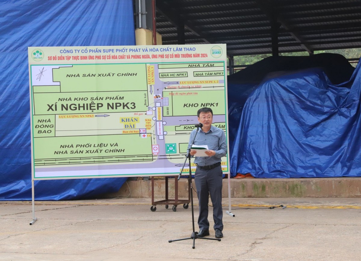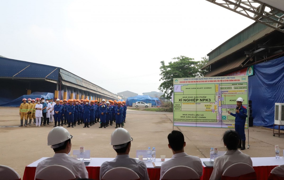 Về phía Công ty Cổ phần Supe Phốt phát và Hoá chất Lâm Thao (gọi tắt Supe Lâm Thao), có ông Trần Đại Nghĩa, Phó Tổng Giám đốc Công ty và thủ trưởng các đơn vị trong công ty; Ban chỉ huy cùng lực lượng cán bộ tham gia diễn tập; lực lượng phục vụ, hỗ trợ cuộc diễn tập.