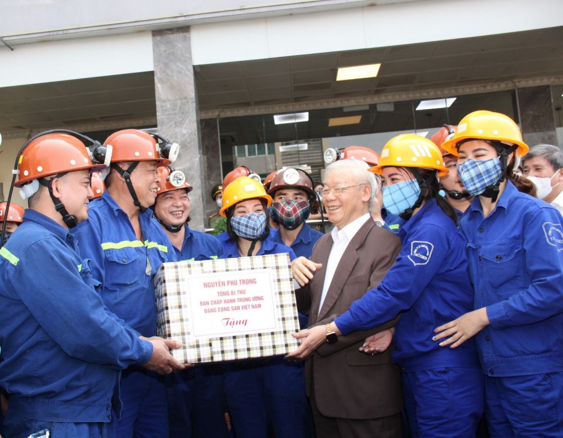 | Tổng Bí thư Nguyễn Phú Trọng thăm, tặng quà động viên người lao động Công ty CP Than Vàng Danh - Vinacomin (tháng 4/2022) |