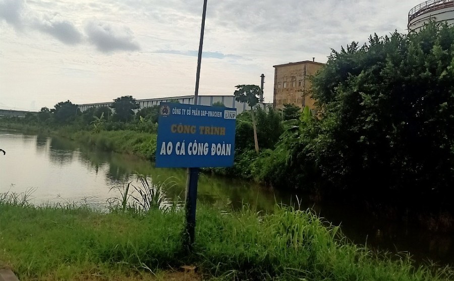 | Khu vực ao cá công đoàn là một trong những nguồn cung cấp thực phẩm cho bếp ăn công ty |
