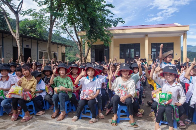 Lần này đón chúng tôi là sự hồn nhiên của các bé học sinh, các bạn nhỏ ùa ra và liên tục chào chúng tôi bằng tiếng kinh và tiếng dân tộc. Anh em trong đoàn thật sự bất ngờ vì sự đón tiếp quá nồng nhiệt này. Ngay lập tức 200 bộ đệm, chăn, chiếu, màn được tập kết tại sân trường cũng như hơn 700 phần quà trung thu được bày ra. Các phần quà này được trao cho các em học sinh trường Tiểu học, Trung học và Mầm non xã Nậm Pì.