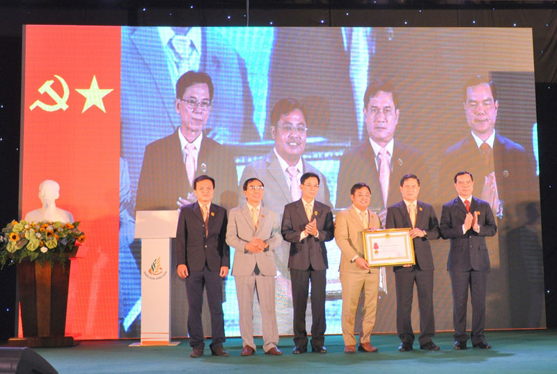 | Ông Nguyễn Đình Khang - Ủy viên Trung ương Đảng, Bí thư Tỉnh ủy Hà Nam, thừa ủy quyền của Chủ tịch nước trao tặng Huân chương Lao động hạng Nhất cho tập thể CBCNV công ty. Ảnh Thanh Minh |