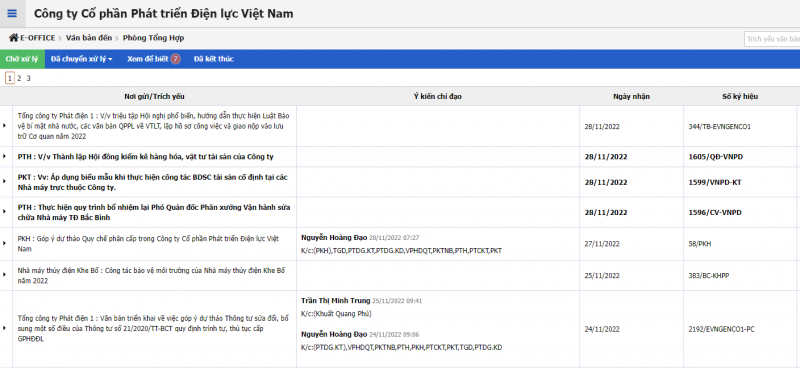 | Màn hình hệ thống văn phòng điện tử được Công ty cổ phần Phát triển Điện lực Việt Nam thực hiện |