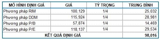 Người viết sử dụng Market Multiple Models (P/E, P/B) kết hợp với phương pháp chiết khấu dòng tiền (DCF) với tỷ trọng bằng nhau. Mức giá hợp lý của VNM được xác định là 98,016 đồng. Như vậy, giá thị trường vẫn còn khá hấp dẫn để mua vào cho mục tiêu đầu tư dài hạn.