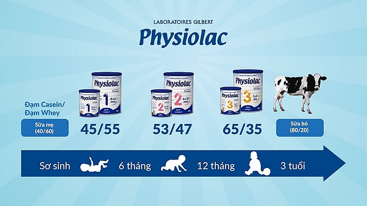 Thứ nhất là tỷ lệ đạm Casẹin/Whey tương đương sữa mẹ. Cụ thể, sữa Physiolac có tỷ lệ đạm Casein/Whey tương đương và có sự chuyển đổi giống sữa mẹ tăng độ thích ứng của trẻ, giúp trẻ dung nạp, tiêu hóa, hấp thu chất đạm dễ dàng theo từng giai đoạn phát triển.