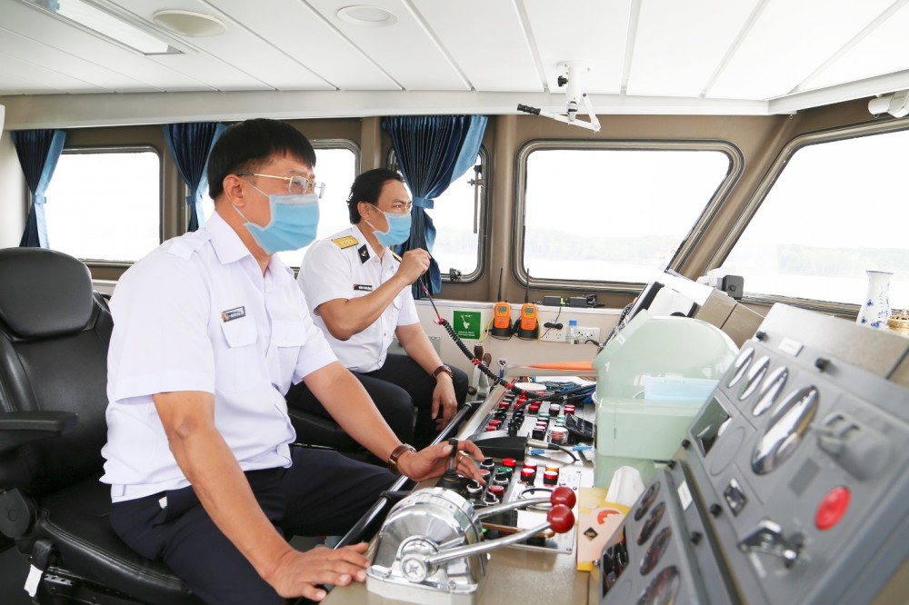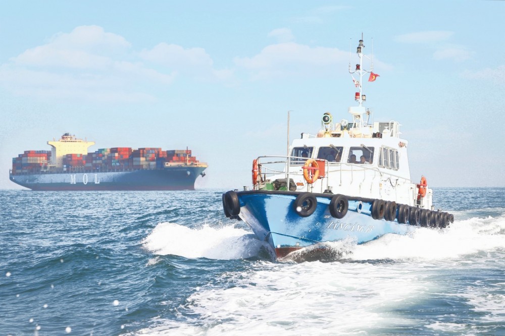 Tàu của Công ty Hoa tiêu Tân cảng đưa đón hoa tiêu thực hiện nhiệm vụ dẹp luồng cho tàu lớn vào Cái Mép |