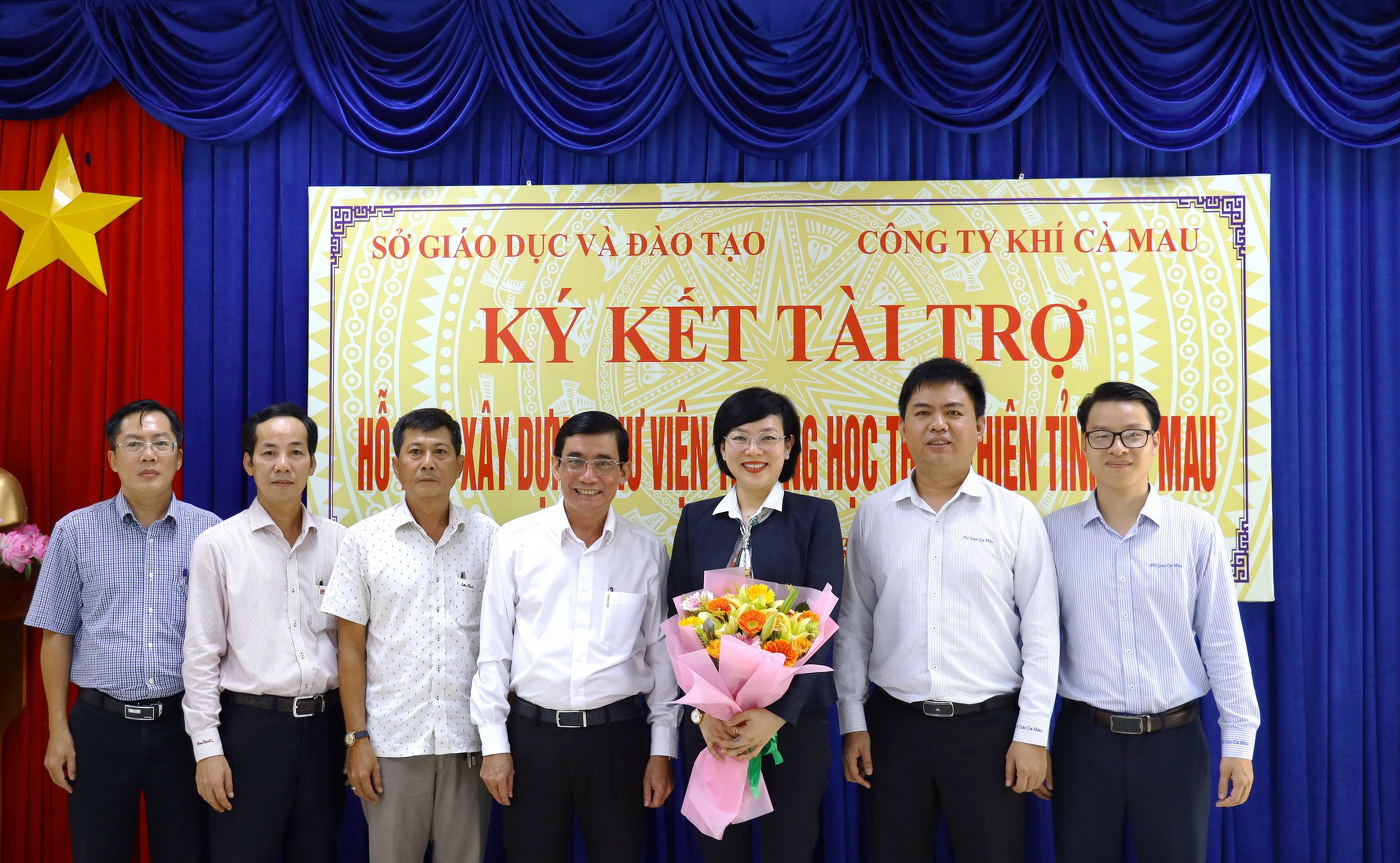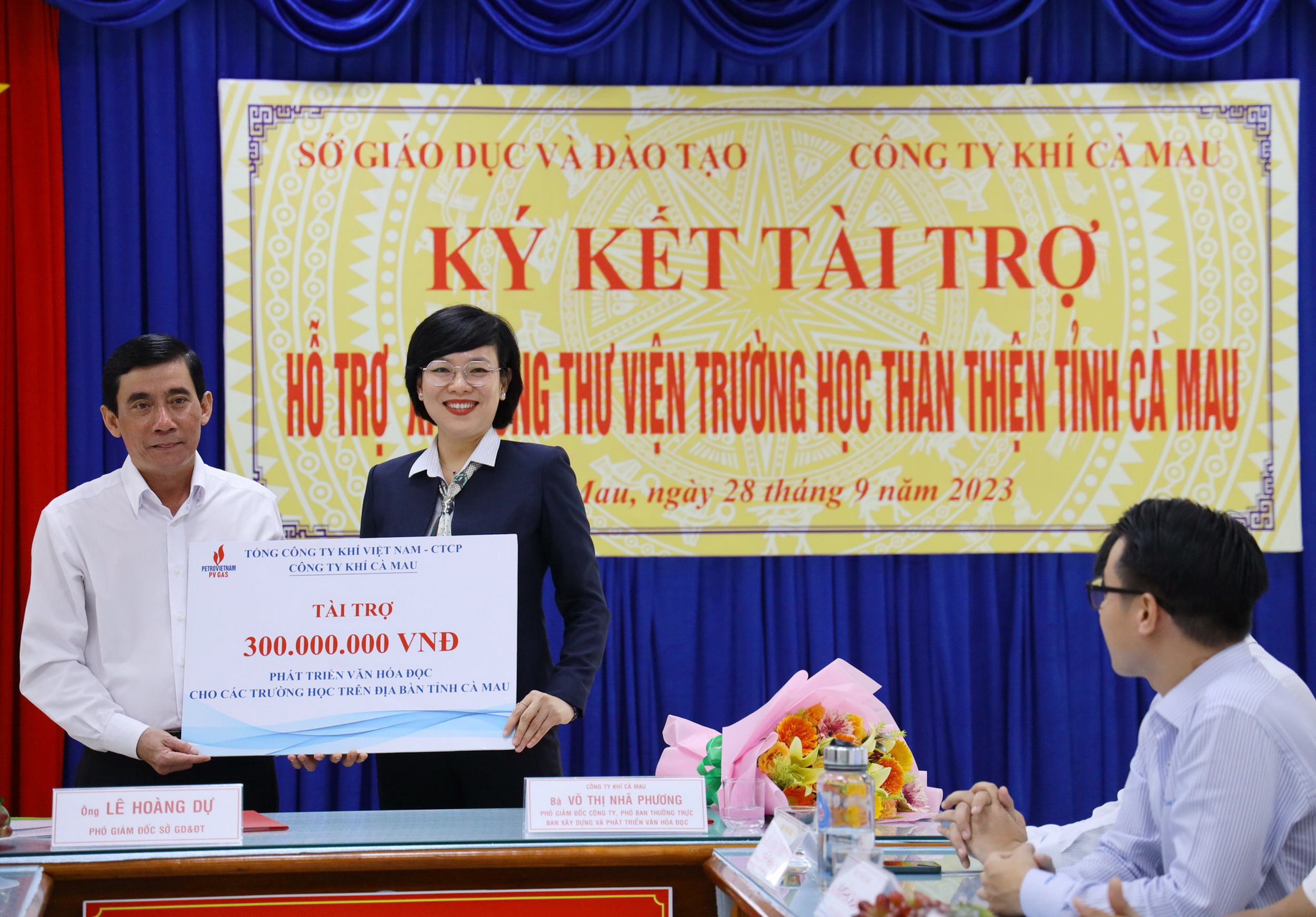 | Đại diện lãnh đạo ngành Giáo dục và Đào tạo Cà Mau trân trọng cảm ơn tấm lòng của người lao động PV GAS |