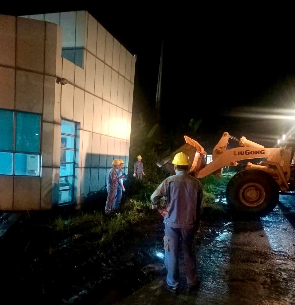 Ông Nguyễn Đình Tuấn cho biết thêm: Khi cơn bão số 03 đổ bộ vào đất liền vào chiều ngày 7/9/2024 tại Công ty đã xuất hiện mưa lớn và gió giật mạnh. Ban chỉ huy PCTT&TKCN của Công ty đã trực 100% quân số tại công ty nhằm chỉ đạo kịp thời khi có sự cố xảy ra. Vào hồi 12h45 ngày 7/9/2024 tổ máy số 02 bị rã lưới phải dừng hoạt động và mất điện toàn nhà máy, đến 21h 30 phút ngày 7/9/2024 trời mưa lớn nước tràn nhà bơm tổng hợp, Ban chỉ huy PCTT&TKCN của công ty đã duy động nhân lực triển khai công tác thoát nước, ứng cứu kịp thời và ngăn ngừa nước dâng cao làm ảnh hưởng đến thiết bị của nhà máy.