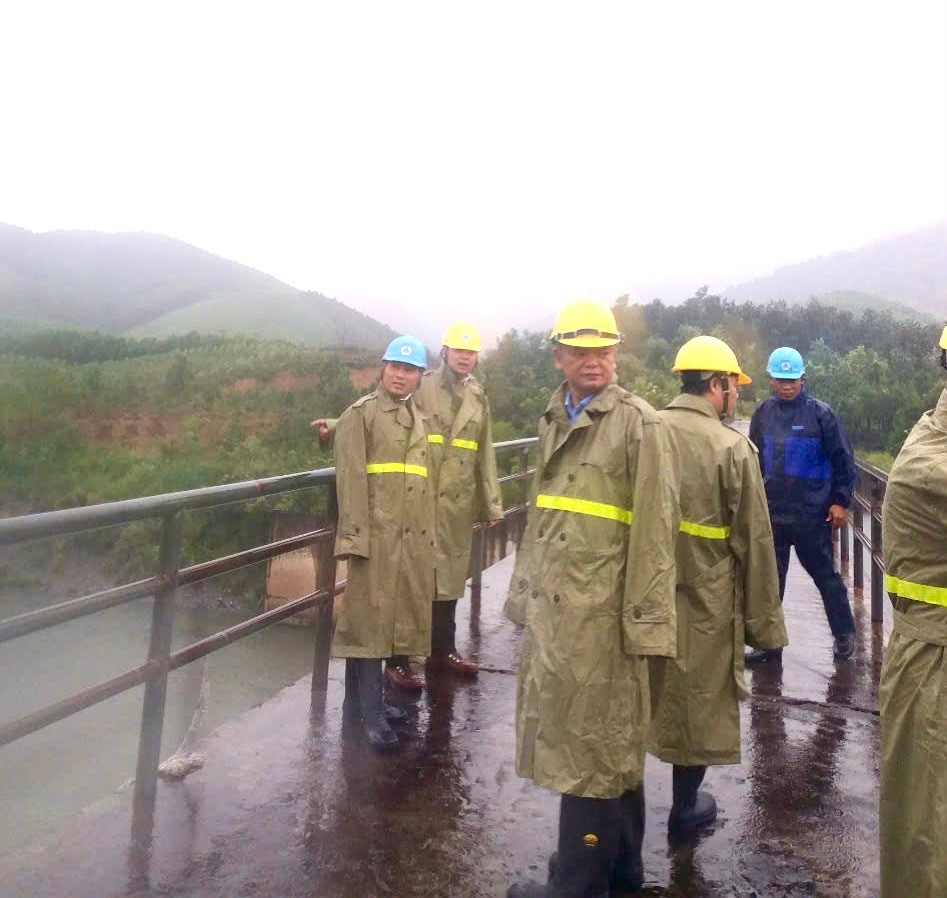 | Ban lãnh đạo Tổng công ty Điện lực TKV trực tiếp kiểm tra khu vực đập nước số 2 của Công ty Nhiệt điện Sơn Động -TKV |