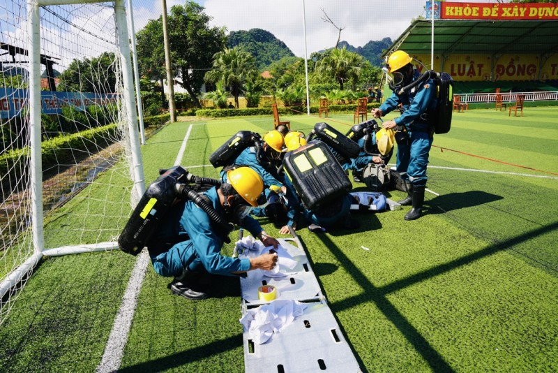 Theo đó, lực lượng CCM bán chuyên Công ty Than Quang Hanh tham gia luyện tập có 18 CBCN là đội viên đội CCM bán chuyên của Công ty. Thời gian luyện tập và tham dự Hội thao từ cuối tháng 8/2023 đến hết ngày 12/10/2023 chia làm 5 đợt: Đợt 1 luyện tập 05 ngày từ ngày 27/8-31/8/2023 tại Trung tâm Cấp cứu Mỏ - Vinacomin; Đợt 2 luyện tập 18 ngày từ ngày 4/9-23/9/2023 tại mặt bằng khu nhà máy lọc nước của Công ty; Đợt 3 luyện tập 6 ngày từ ngày 25/9 -30/9/2023 tại Trung tâm Cấp cứu mỏ - Vinacomin; Đợt 4 luyện tập 7 ngày từ ngày 2/10-8/10/2023 tại mặt bằng khu nhà máy lọc nước của Công ty; Đợt 5 tham dự Hội thao CCM bán chuyên TKV năm 2023 thời gian 4 ngày từ 9/10-12/10/2023 tại Trung tâm Cấp cứu mỏ - TKV.