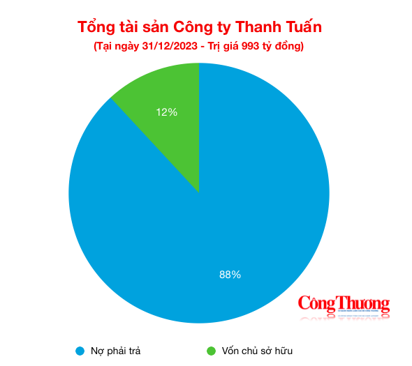 Để có nguồn vốn chi trả cho các công trình, dự án lớn đang thi công, Công ty Thanh Tuấn buộc phải chiếm dụng vốn từ bên ngoài, qua đó nợ phải trả đã tăng đến 874,5 tỷ đồng, đè nặng áp lực trả nợ lên vốn chủ sở hữu 118 tỷ đồng, hệ số chênh lệch giữa nợ và vốn lên tới 7,4 lần, tương đương 756 tỷ đồng.