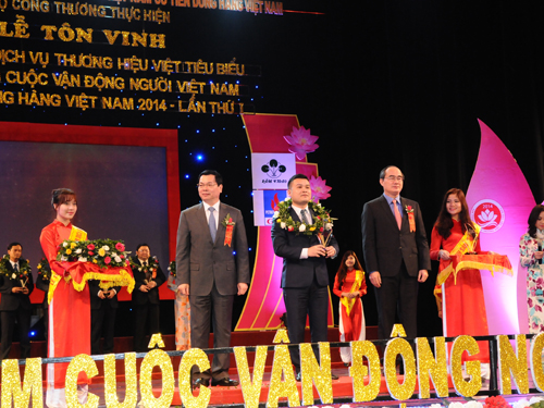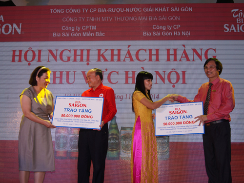 Đại diện Tổng công ty CP Bia Sài Gòn lên nhận giải Thương hiệu Việt tiêu biểu.