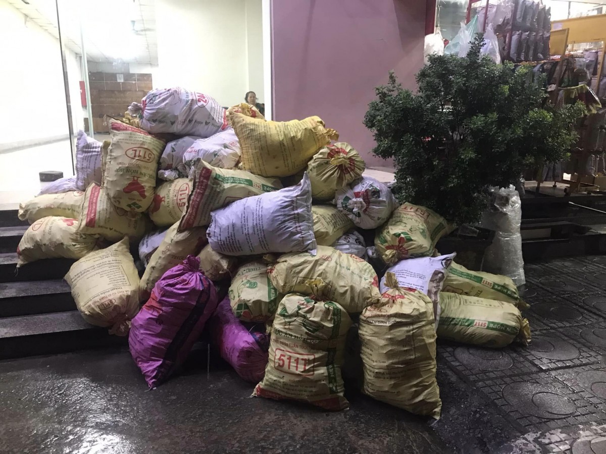 | Sử dụng các bảo tải chứa đất, cát để ngăn chặn nước ngập. Ảnh: Minh Khoa |