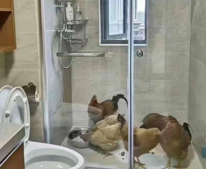 | Thậm chí, những con gà cũng được "cất giấu" trong nhà tắm. Ảnh: ST |