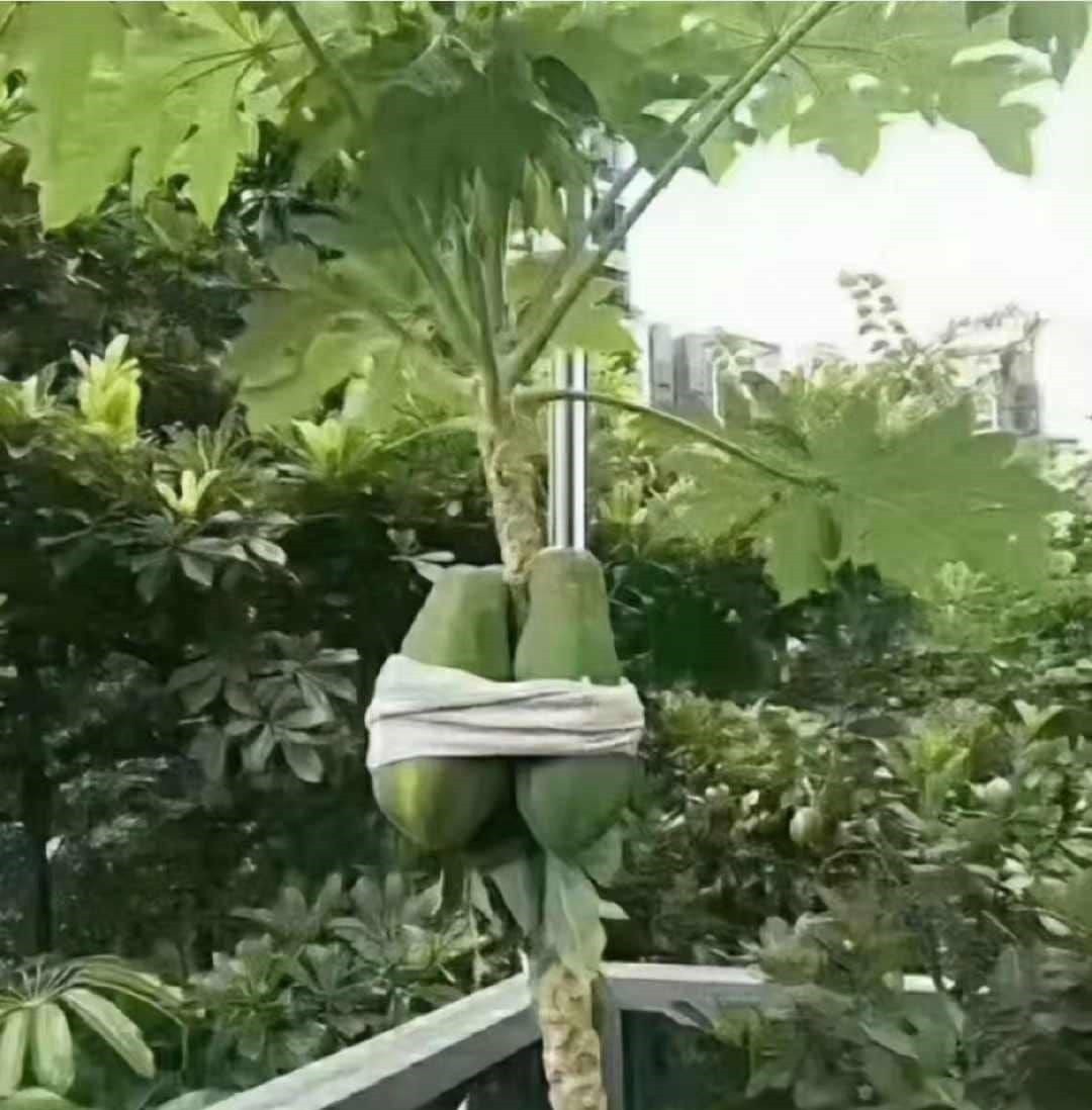 | Với cây đu đủ cũng được trang bị chống mưa bão. Ảnh: ST |