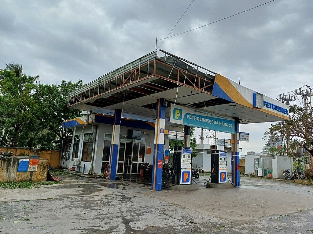 Cửa hàng xăng dầu số 27 tại Hải Phòng bị thiệt hại nặng sau bão số 3. Ảnh: Petrolimex |