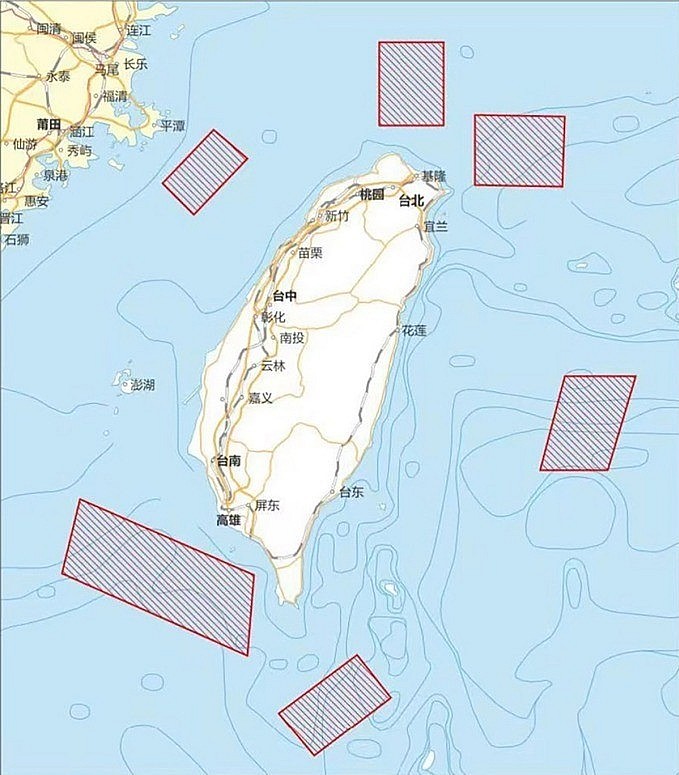 Hãng Thông tấn Xinhua ngày 2/8 thông báo Bộ Tư lệnh Chiến khu phía Đông của quân đội Trung Quốc sẽ tổ chức 6 cuộc diễn tập quân sự bắn đạn thật quanh đảo Đài Loan.