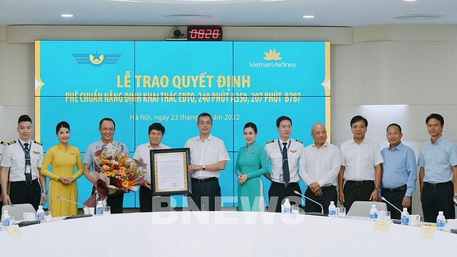Và ngày 21/6/2022, Cục Hàng không Việt Nam đã chính thức phê duyệt năng định khai thác EDTO cho Vietnam Airlines, với 8 tàu bay Boeing 787 và 14 tàu Airbus A350 có thời gian EDTO lần lượt là 207 phút và 240 phút.