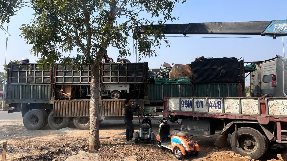 | Vận chuyển hàng hóa đến nơi tiêu hủy. Ảnh: Văn Thi |