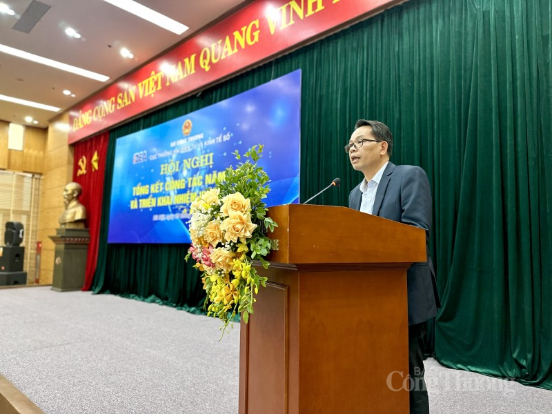 | Ông Nguyễn Thế Quang – Phó Cục trưởng Cục Thương mại điện tử và Kinh tế số phát biểu tại hội nghị |