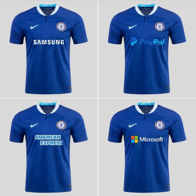 Hiện tại có tới 10 CLB tại Premier League vẫn chưa thể xác định được đối tác thương mại chính của họ trong mùa giải kế tiếp. Chelsea là đội đã vung tiền không tiếc tay trong tháng 1 vừa qua với hơn 300 triệu rải như lá cho những bổ sung nhân sự. Thế nhưng có một sự thật là trong mùa giải tới đây, họ có thể ra sân với một chiếc áo đấu trống trơn nhà tài trợ trước ngực và trên tay áo. Đối tác Three hiện đang xuất hiện trên áo đấu của The Blues sẽ hết hạn hợp đồng vào cuối mùa giải này. Đội chủ sân Stamford Bridge hiện đang tìm kiếm một nhà tài trợ áo đấu mới có thể đem về cho họ số tiền ít nhất là ngang bằng hoặc hơn số tiền 50 triệu bảng/mùa. Ấy là còn chưa kể tới logo phụ xuất hiện ở trên cánh tay cũng có thể đem về cho đội bóng này từ 10 đến 15 triệu bảng.