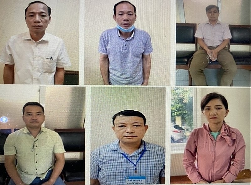 | Các bị can trong vụ án "Vi phạm quy định về đấu thầu gây hậu quả nghiêm trọng" xảy ra ở Sở Giáo dục và Đào tạo Thanh Hóa. Ảnh Bộ Công an |