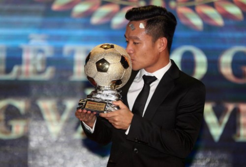 Đinh Thanh Trung trong lễ trao giải Quả bóng vàng Việt Nam 2017 (Ảnh: VnExpress)
