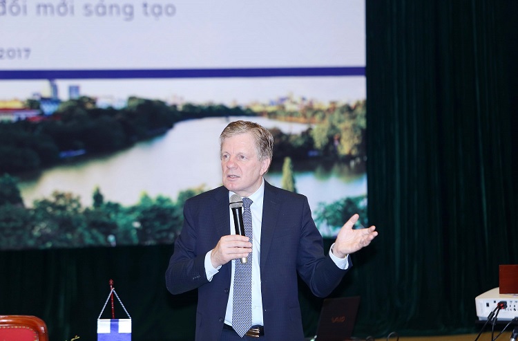 Buổi thuyết trình của ông Esko Aho tại Bộ Khoa học và Công nghệ với chủ đề “Kinh nghiệm của Phần Lan trong phát triển kinh tế dựa trên đổi mới sáng tạo”. Cựu Thủ tướng Esko Aho cho biết, Phần Lan là quốc gia Bắc Âu có diện tích tương đương Việt Nam nhưng có quy mô dân số nhỏ hơn 16 lần (5,5 triệu người), thu nhập bình quân đầu người hơn 41.000 USD, nhân lực hoạt động R&D hơn 80.000 người (145 cán bộ R&D/1 vạn dân). Năm 2017 và các năm gần đây, Phần Lan luôn ở top 10 quốc gia hàng đầu thế giới về chỉ số đổi mới sáng tạo toàn cầu GII và chỉ số cạnh tranh toàn cầu (GCI).