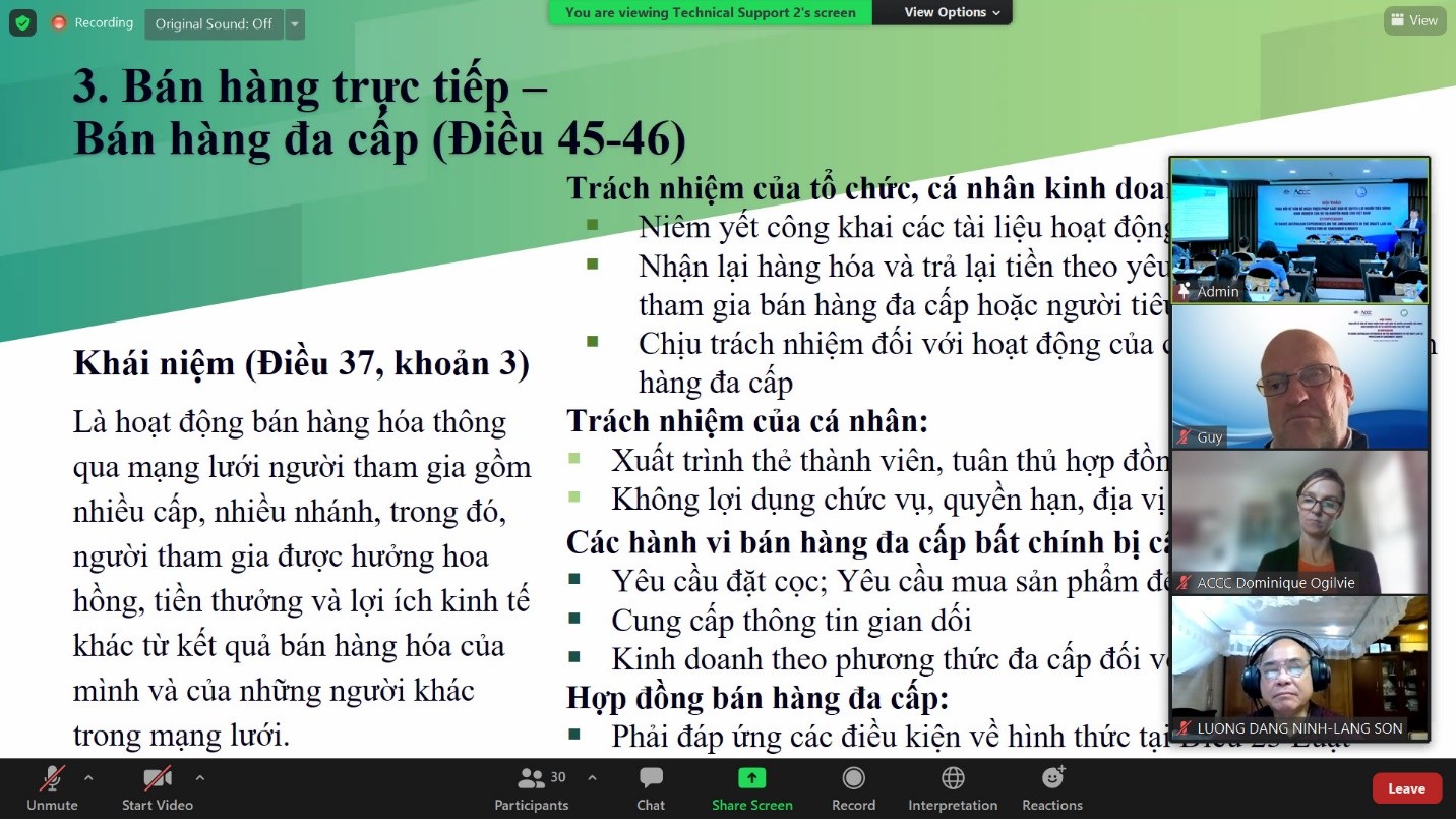 Không chỉ giới hạn ý kiến trong nước, Bộ Công Thương đã đồng thời tổ chức các hoạt động để tham vấn, xin ý kiến của các chuyên gia thuộc các tổ chức, quốc gia có kinh nghiệm phát triển về công tác bảo vệ quyền lợi người tiêu dùng.