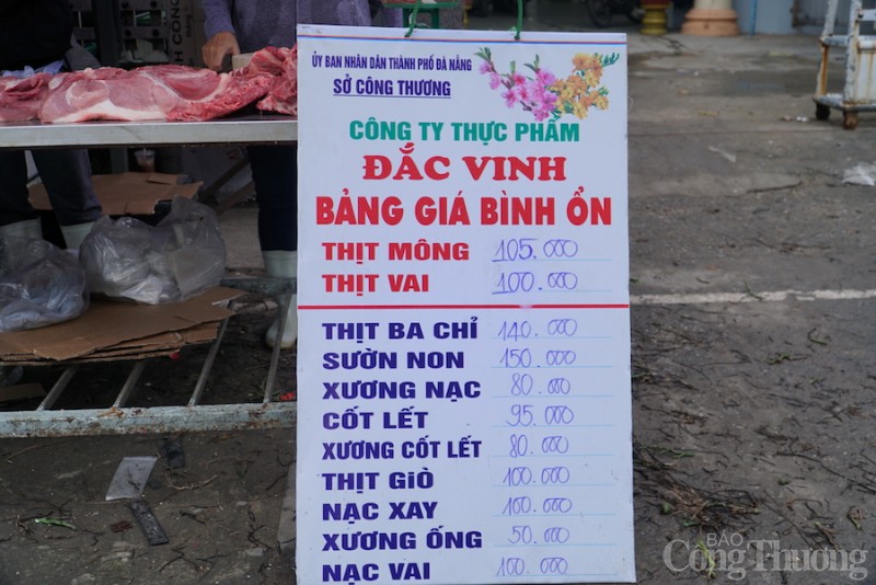 Ghi nhận tại điểm bán thịt heo bình ổn giá chợ Hòa Khánh (quận Liên Chiểu, TP. Đà Nẵng) sáng 18/1, các mặt hàng thịt heo được gồm thịt mông, thịt vai, thịt ba chỉ, sườn non, xương nạc, cốt lết, xương cốt lết, thịt giò, nạc xay, xương ống, nạc vai. Giá các mặt hàng thịt heo thấp hơn giá thị trường khoảng 5.000 đồng/kg tùy mặt hàng, và được niêm yết công khai, rõ ràng. Mức giá này sẽ được giữ cố định trong cả 3 ngày bán.