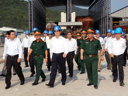 Thủ tướng Nguyễn Tấn Dũng khẳng định, Đảng, Nhà nước hết sức quan tâm, đầu tư và tạo điều kiện thuận lợi phát triển ngành công nghiệp đóng tàu, đáp ứng yêu cầu thực hiện Chiến lược biển.