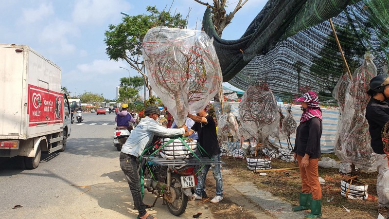 Đào Nhật Tân (Hà Nội) được các thương lái đưa về chợ hoa Tết Đà Nẵng và được nhiều người chọn mua. Một cây đào gốc to, dáng đẹp được bán với giá 6 triệu đồng. Những cây nhỏ hơn thì có giá từ 500.000 đồng đến 1,5 triệu đồng.