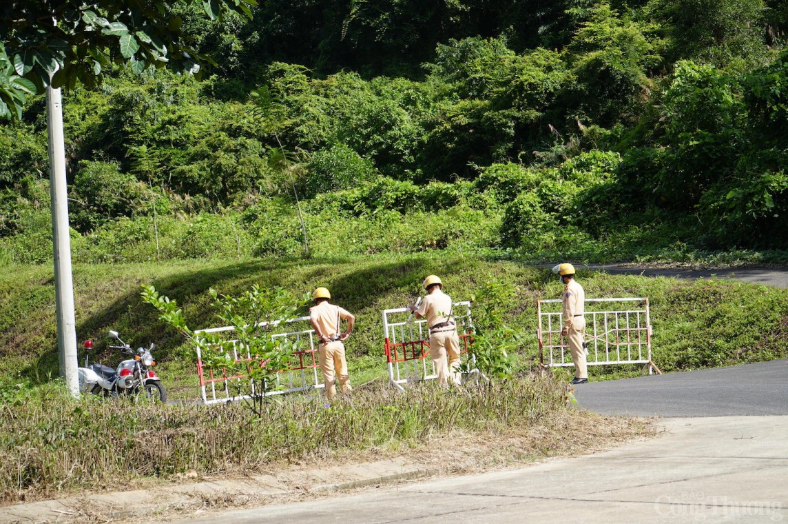 | Lực lượng cảnh sát giao thông đến hiện trường, tiến hành phân luồng giao thông |