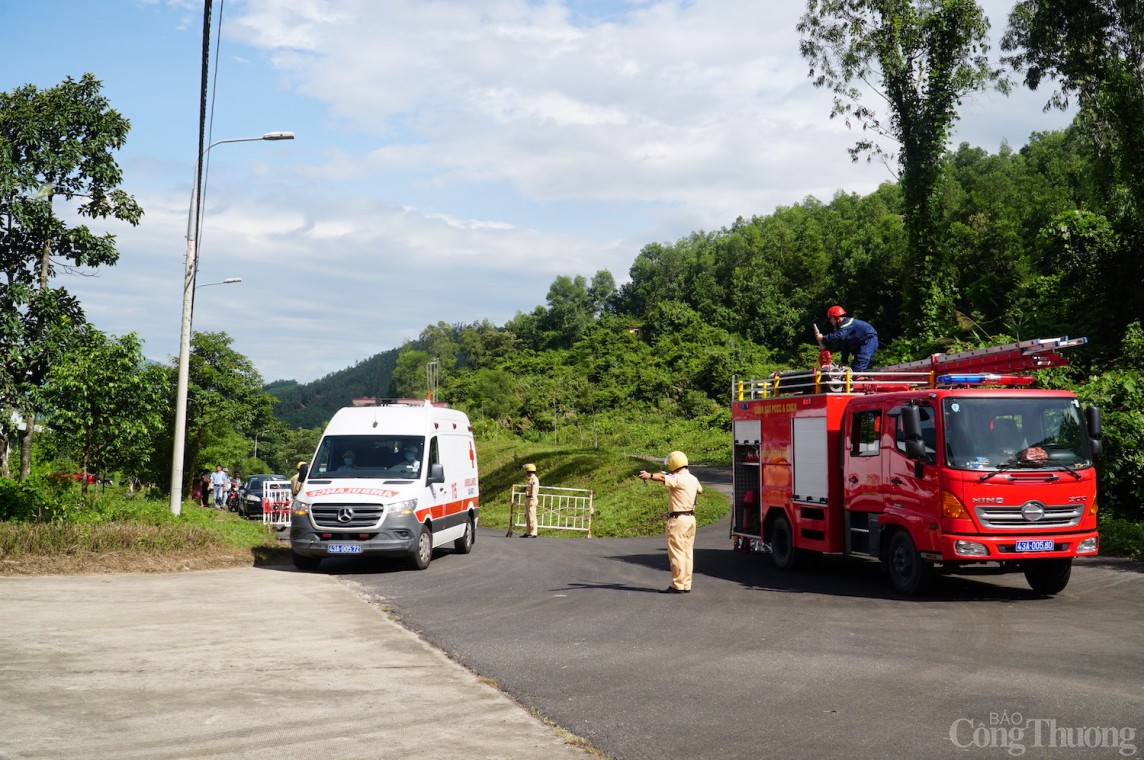 | Lực lượng phòng cháy chữa cháy đến hiện trường và vào vị trí sẵn sàng chiến đấu |