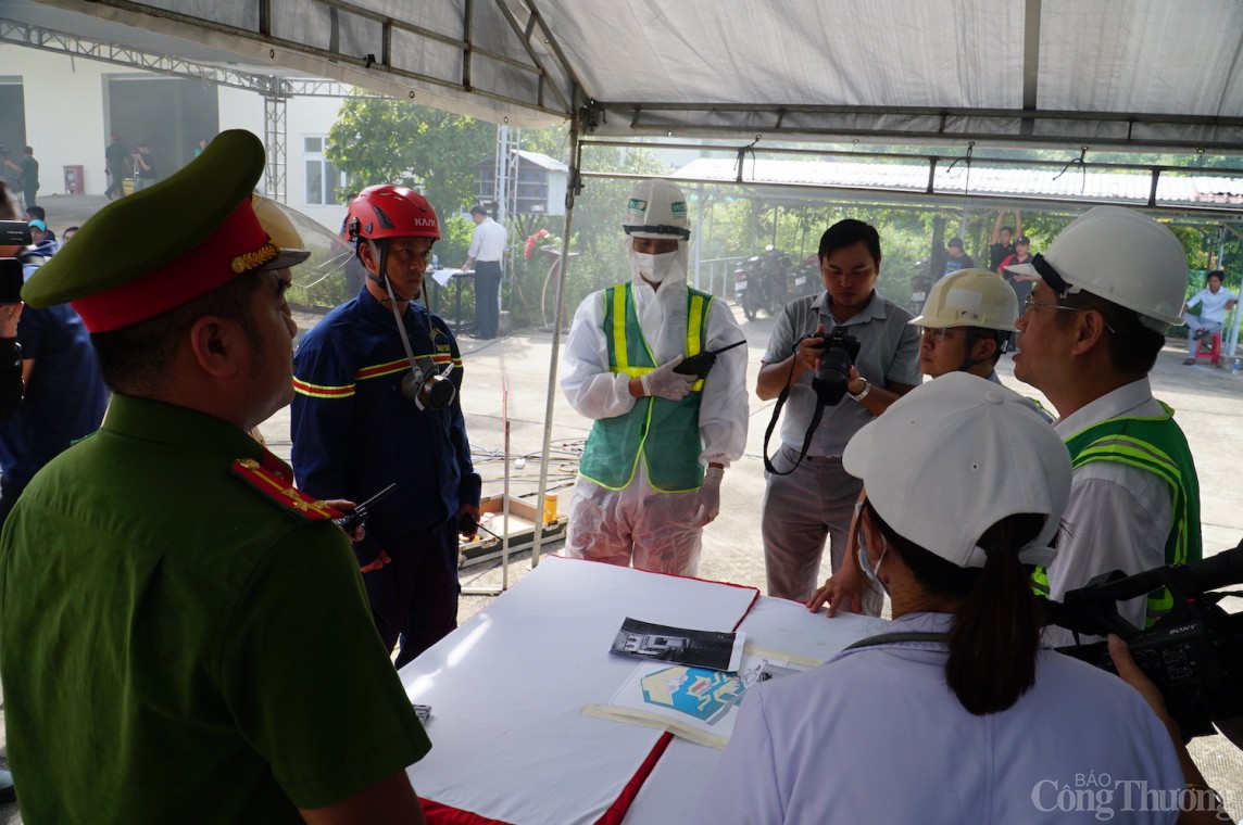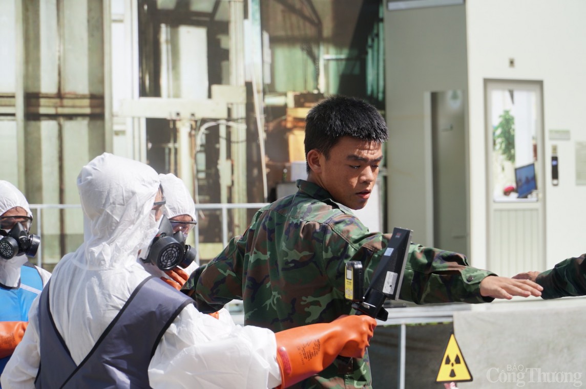 Diễn tập ứng phó sự cố tại khu vực xảy ra sự cố bao gồm các hoạt động ứng phó như sau: Đưa thanh nguồn về bể chứa nguồn; đo đạc, đánh giá suất liều khu vực buồng chứa hàng; chữa cháy; chăm sóc y tế; đánh giá nhiễm bẩn phóng xạ cho nạn nhân và lực lượng tham gia ứng phó; thực hiện tiêu tẩy vệ sinh buồng chứa hàng (mô phỏng buồng chiếu hàng và bể chứa nguồn tại hiện trường diễn tập).