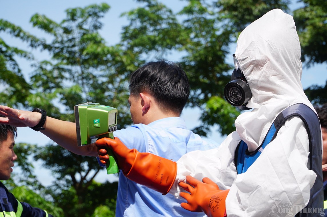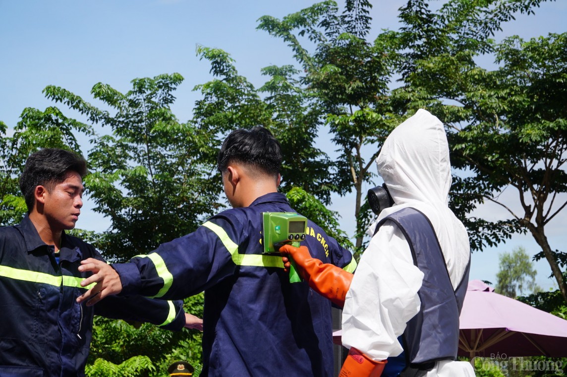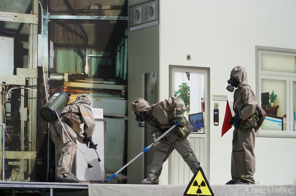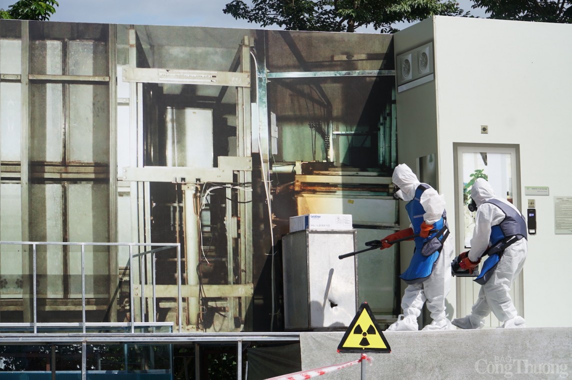 | Bộ đội hóa học tiến hành tiêu tẩy, vệ sinh môi trường khu vực buồng chiếu xạ |