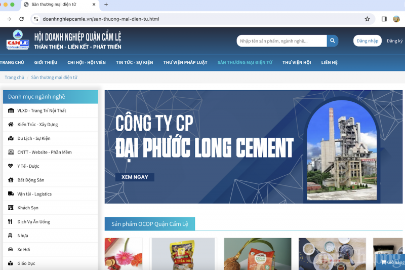 | Giao diện sàn thương mại điện tử Hội doanh nghiệp quận Cẩm Lệ (TP. Đà Nẵng) |