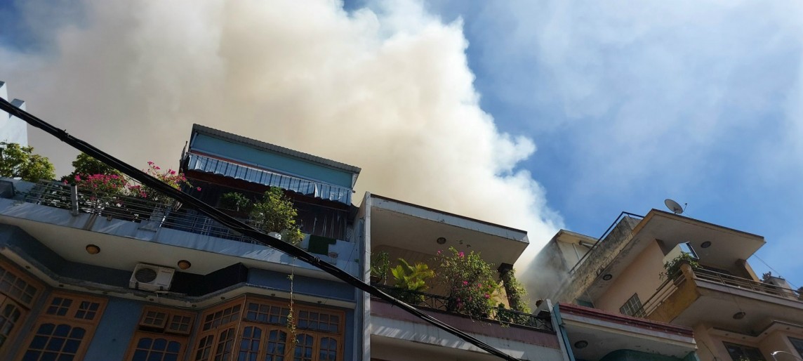 Thời điểm này, tại ngôi nhà đang chứa các thiết bị máy móc điện tử nên ngọn lửa bùng lên nhanh và lan xuống tầng dưới, mọi người phải bỏ chạy ra ngoài. Khi đó, ngọn lửa bùng lên dữ dội tạo cột khói đen bốc cao hàng chục mét, kèm tiếng nổ phát ra từ ngôi nhà. Nhiều gia đình sống xung quanh phải sơ tán ra ngoài để đảm bảo an toàn.