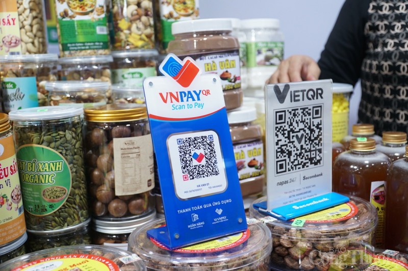 | Tại mỗi gian hàng đều có mã QR code để người dân thuận tiện thanh toán |