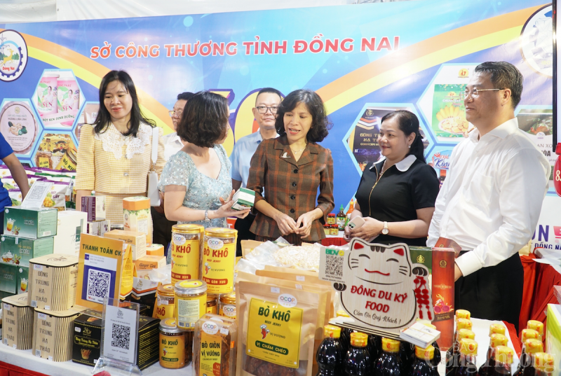 | Bà Lại Việt Anh - Phó Cục trưởng Cục Thương mại điện tử và Kinh tế số tham quan các gian hàng |
